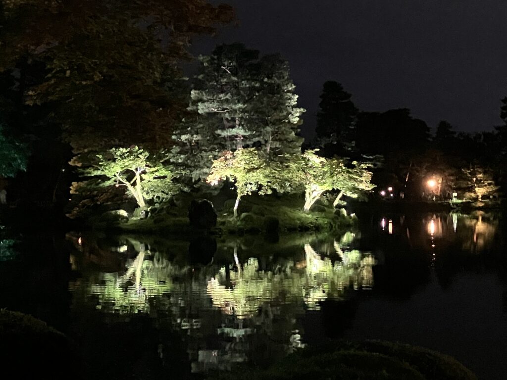 ただ、兼六園の夜景が見られたのは良かったです。写真は、昼と夜の金沢城の庭園です。お昼はお茶とお菓子をいただきながら庭園をゆっくり鑑賞することができました。外国人の方も多かったです。